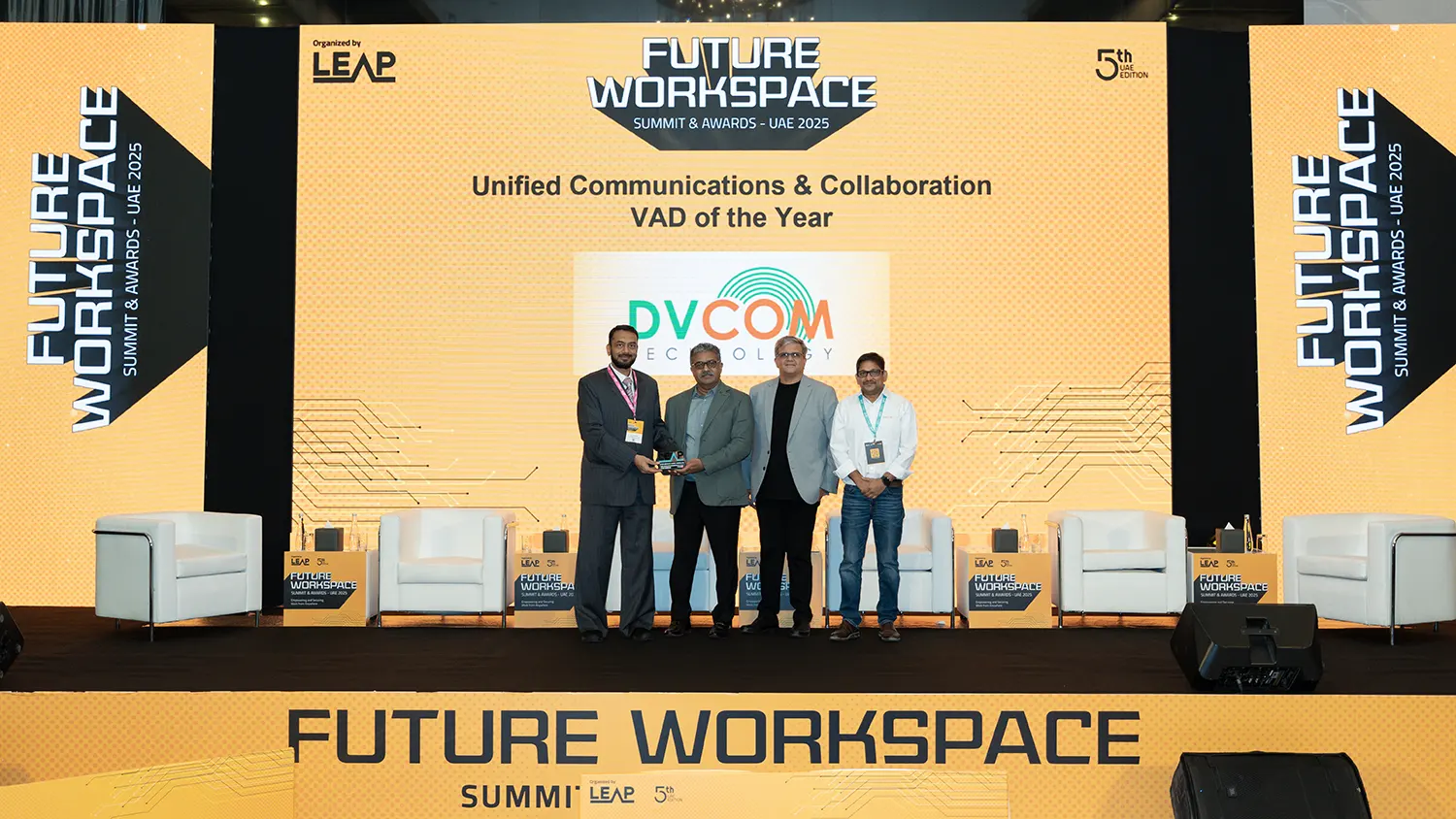 DVCOM Technology, a leading value-added distributor and solution provider across the UAE and GCC, has been recognised as the Unified Communications (UC) & Collaboration Value-Added Distributor (VAD) of the Year at the CXO DX Future Workspace Summit & Awards 2025.
